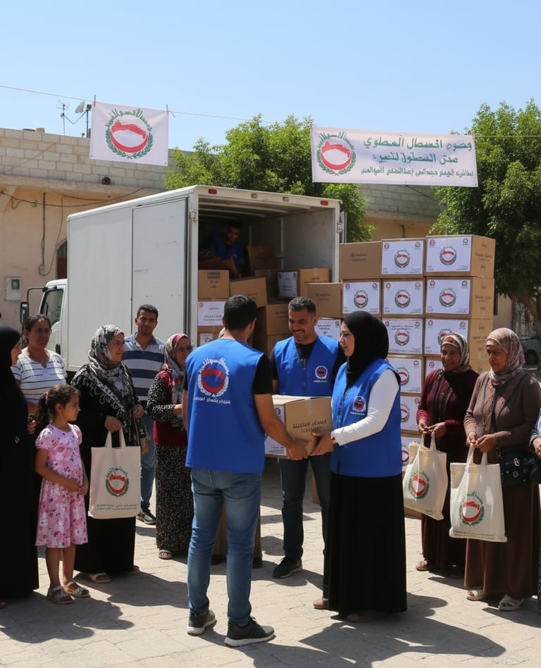 "Ramadan - Kampagne", um sie unseren Brüdern und Schwestern zu überbringen, die unter schwierigen Bedingungen in Palästina überleben müssen und mit einer Vielzahl von Schwierigkeiten konfrontiert sind .
