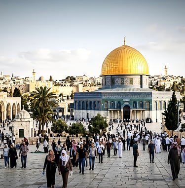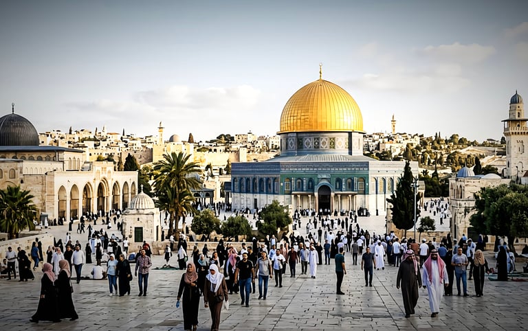 Allah l'exalté dit ce qui suit dans le Saint Coran: “Saint est Celui qui a conduit son serviteur de nuit de la Mosquée Sacrée à la Mosquée lointaine (Mosquée Al-Aqsa) dont nous avons béni les environs, afin que nous puissions lui montrer certains de nos signes. En vérité, il est l'Audient, le Clairvoyant."(Sourate al-Israa, 1). "Et nous l'avons sauvé (Ibrahim) et Lot et les avons amenés au pays que nous avons béni pour tous les peuples."(Sourate al-Anmbi ' jaa, 71). "Et nous soumîmes le grand vent à Salomon. Celui-ci soufflait pour lui dans la direction de la terre que nous avions bénie. Et nous avons la connaissance de toutes choses."(Sourate al-Anmbi'jaa, 81).